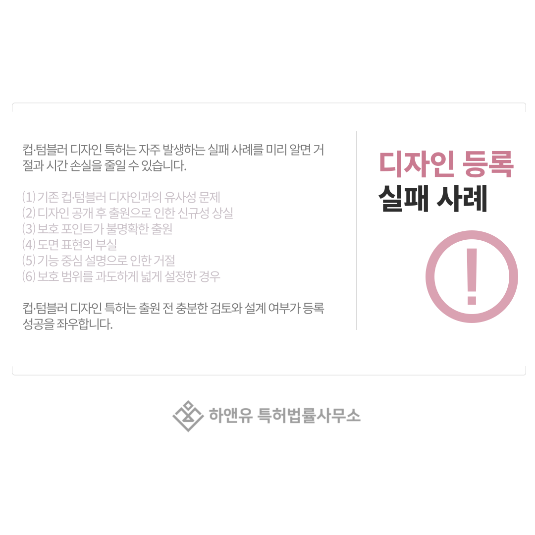 컵·텀블러 디자인 특허 등록 과정에서는 반복적으로 발생하는 실패 사례들이 있습니다.