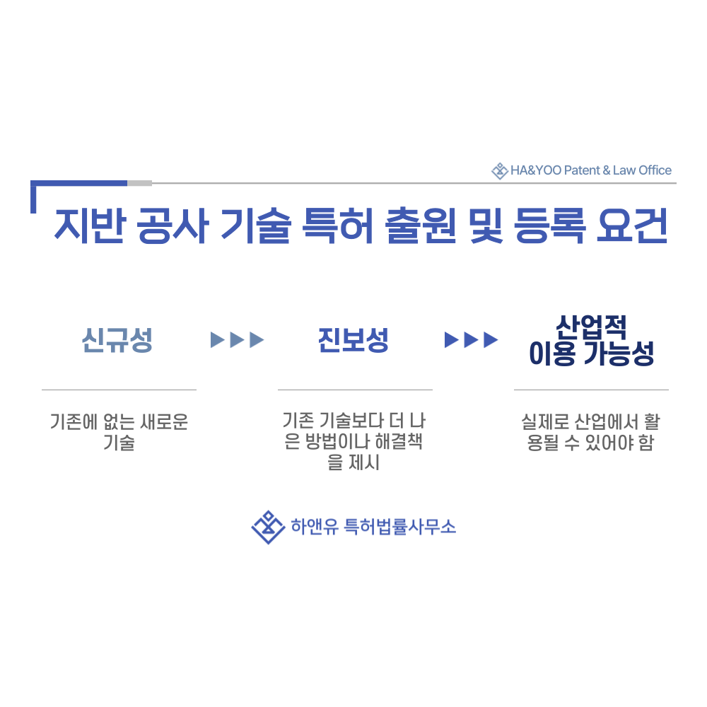 단순한 공정 순서가 아니라, 지반 안정성 향상, 시공 효율 개선, 진동·소음 저감, 안전성 확보 등의 기술적 차별성이 있을 때 특허로 인정됩니다.