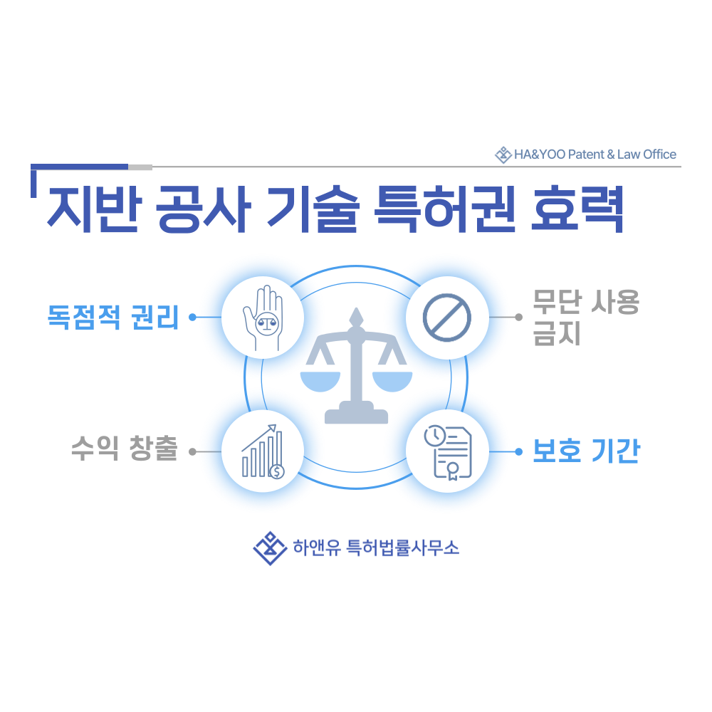 등록된 이후에는 발명자가 해당 공법이나 장비 구조를 독점적으로 사용할 수 있고, 침해 시 법적 조치를 취할 수 있습니다.