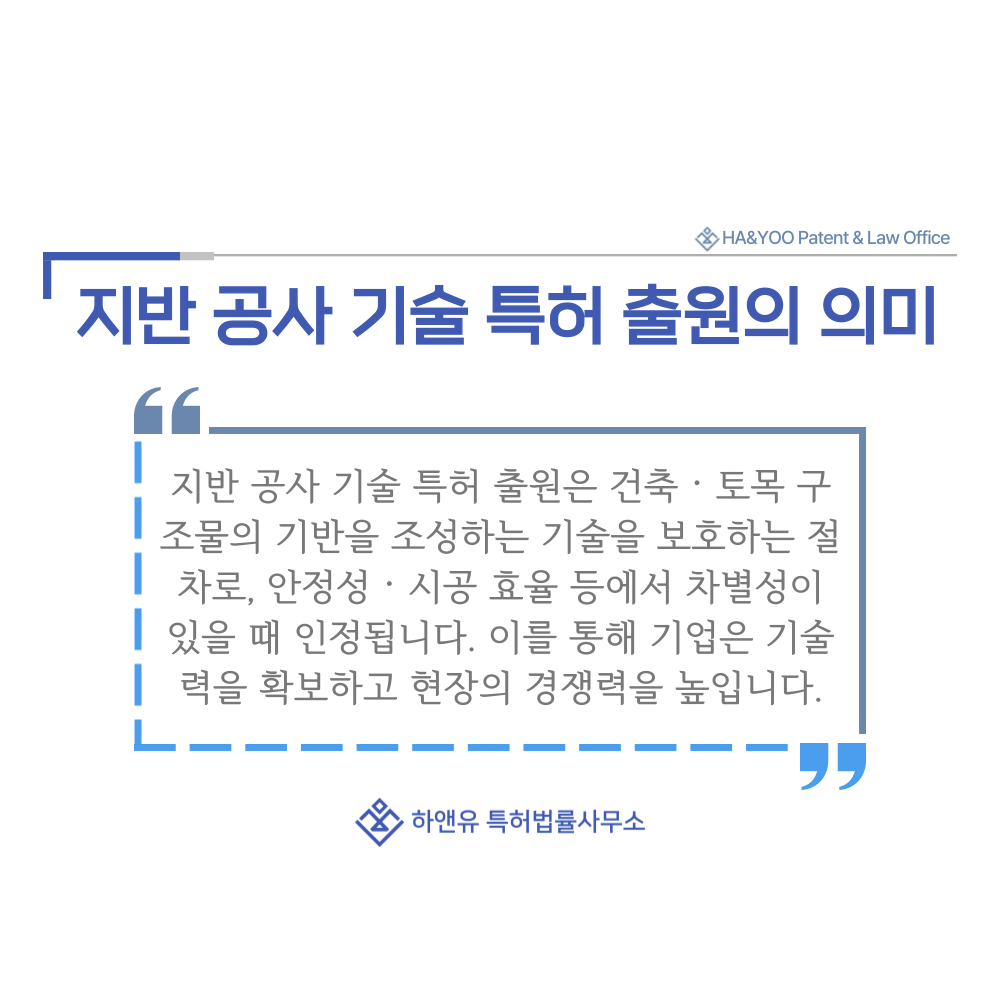 #지반공사기술 #토공 #성토 #절토 #기초말뚝공사 #특허 #특허출원 #특허등록 #특허권 #하앤유 #특허변리사 #PatentRegistration #PatentApplication