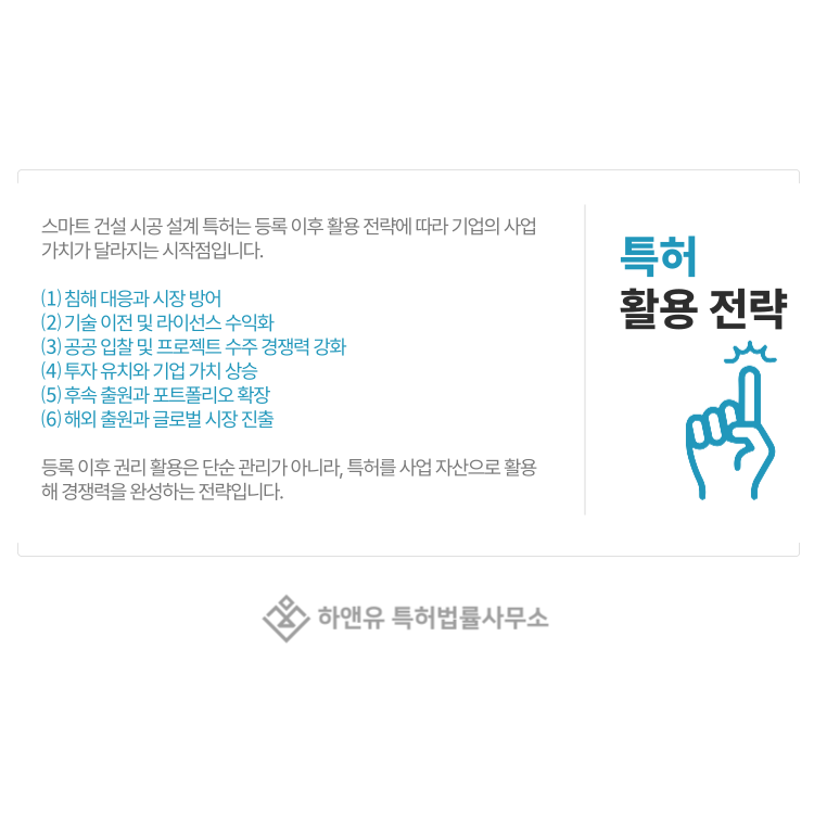 스마트 건설 시공 설계 특허는 등록 이후 어떻게 활용하느냐에 따라 기업의 사업 가치가 크게 달라집니다.