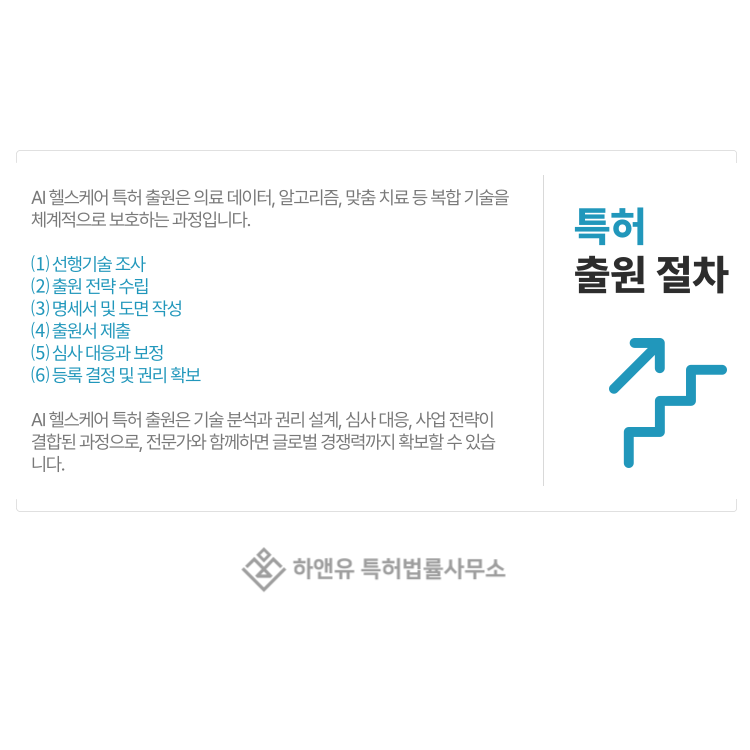 AI 헬스케어 특허 출원 과정은 단순한 서류 제출이 아니라, 기술 분석, 권리 범위 설계, 심사 대응, 사업 전략이 결합된 종합적 과정입니다.