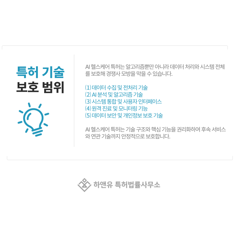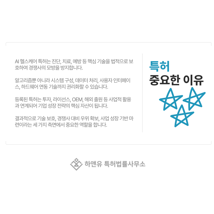AI 헬스케어 특허는 단순한 소프트웨어 등록이 아니라, 기술 구조와 핵심 기능 전체를 권리로 설계하는 과정입니다.