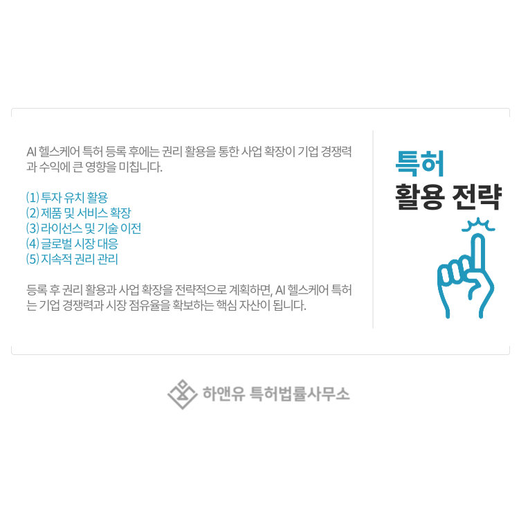 AI 헬스케어 특허를 등록한 후에는 단순한 기술 보호를 넘어, 권리를 활용한 사업적 확장 전략이 필요합니다.