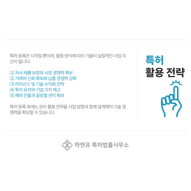 등록된 특허를 어떻게 활용하느냐에 따라 기술은 단순한 권리가 아니라, 실질적인 사업 자산이 됩니다.