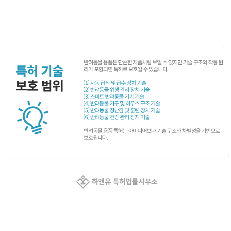 따라서 반려동물 제품이라도 기술적인 구조나 작동 방식이 포함되어 있다면 충분히 특허 보호 대상이 될 수 있습니다.