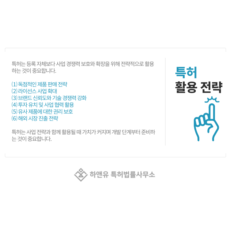 이처럼 특허는 단순한 등록 절차가 아니라 사업 전략과 함께 활용될 때 더 큰 가치를 갖게 됩니다.