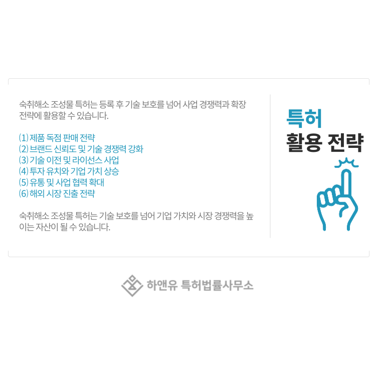 이처럼 숙취해소 조성물 특허는 단순히 기술을 보호하는 권리를 넘어 사업 전략의 핵심 자산으로 활용될 수 있습니다.