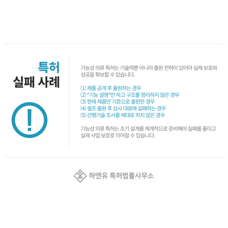 처음 방향을 잘못 잡으면 등록이 어렵거나, 등록돼도 경쟁 제품을 막지 못하는 경우가 많습니다.