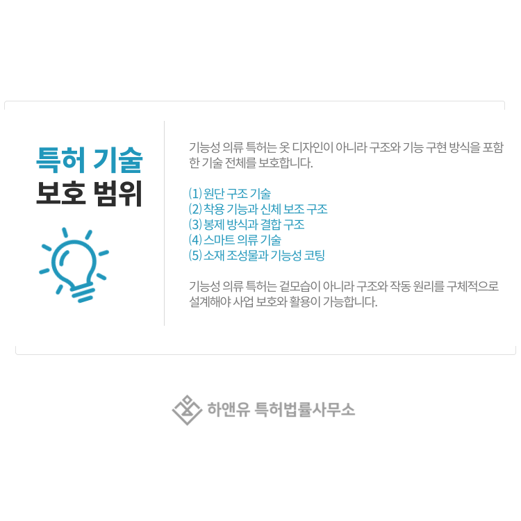 기능성 의류 특허로 보호할 수 있는 기술 범위는 생각보다 훨씬 넓습니다.