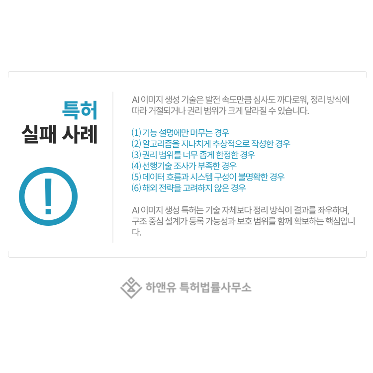 AI 이미지 생성 특허의 실패는 기술 부족이 아니라 정리 방식의 문제에서 발생하는 경우가 많습니다.
