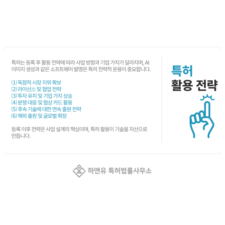 AI 이미지 생성 기술과 같은 소프트웨어 기반 발명은 특히 전략적인 활용이 중요합니다.
