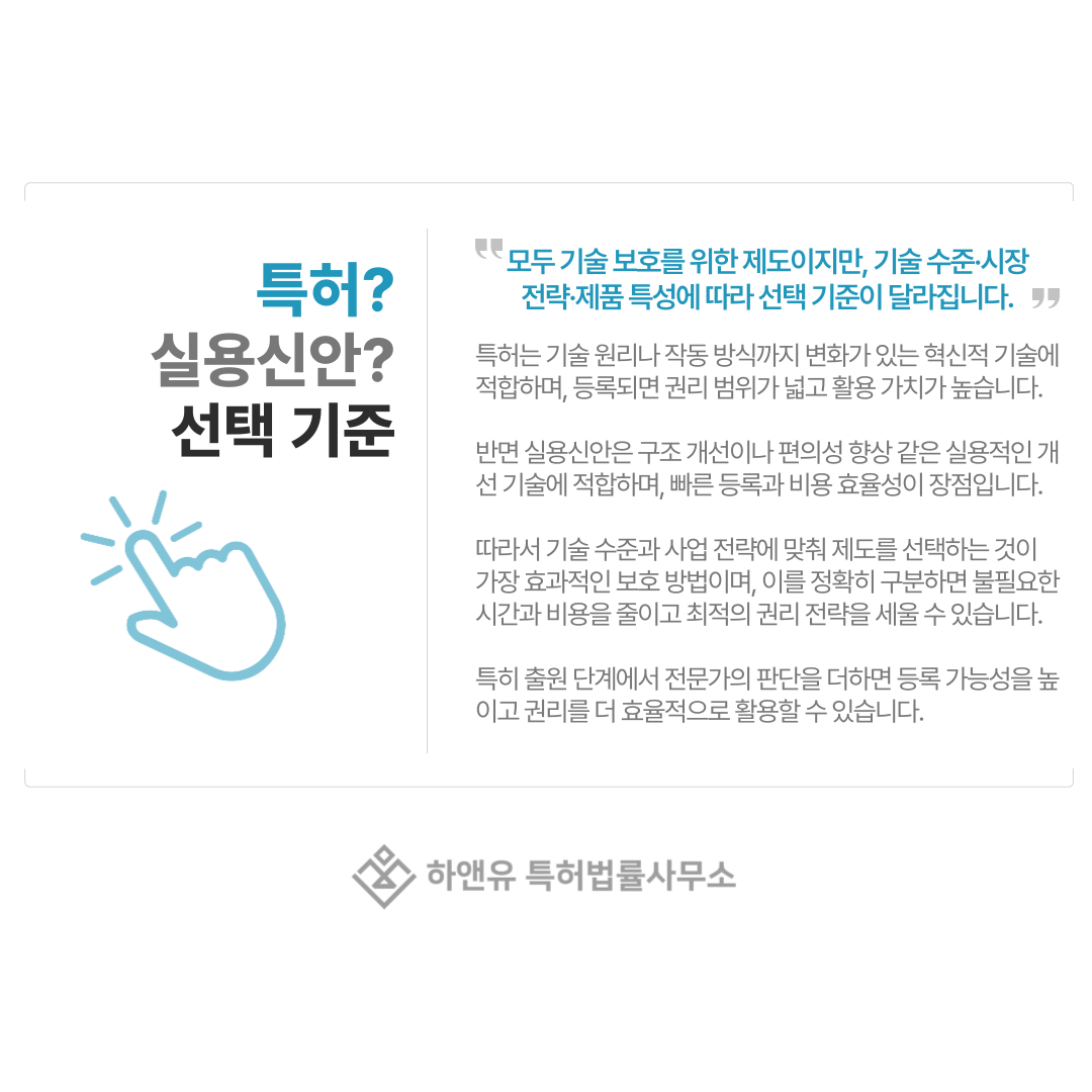 #실용신안 #실용신안출원 #특허차이 #실용신안차이 #지식재산권 #발명출원 #특허출원 #특허등록 #특허권 #PatentRegistration #PatentApplication #특허사무소 #특허법률사무소 #하앤유특허법률사무소